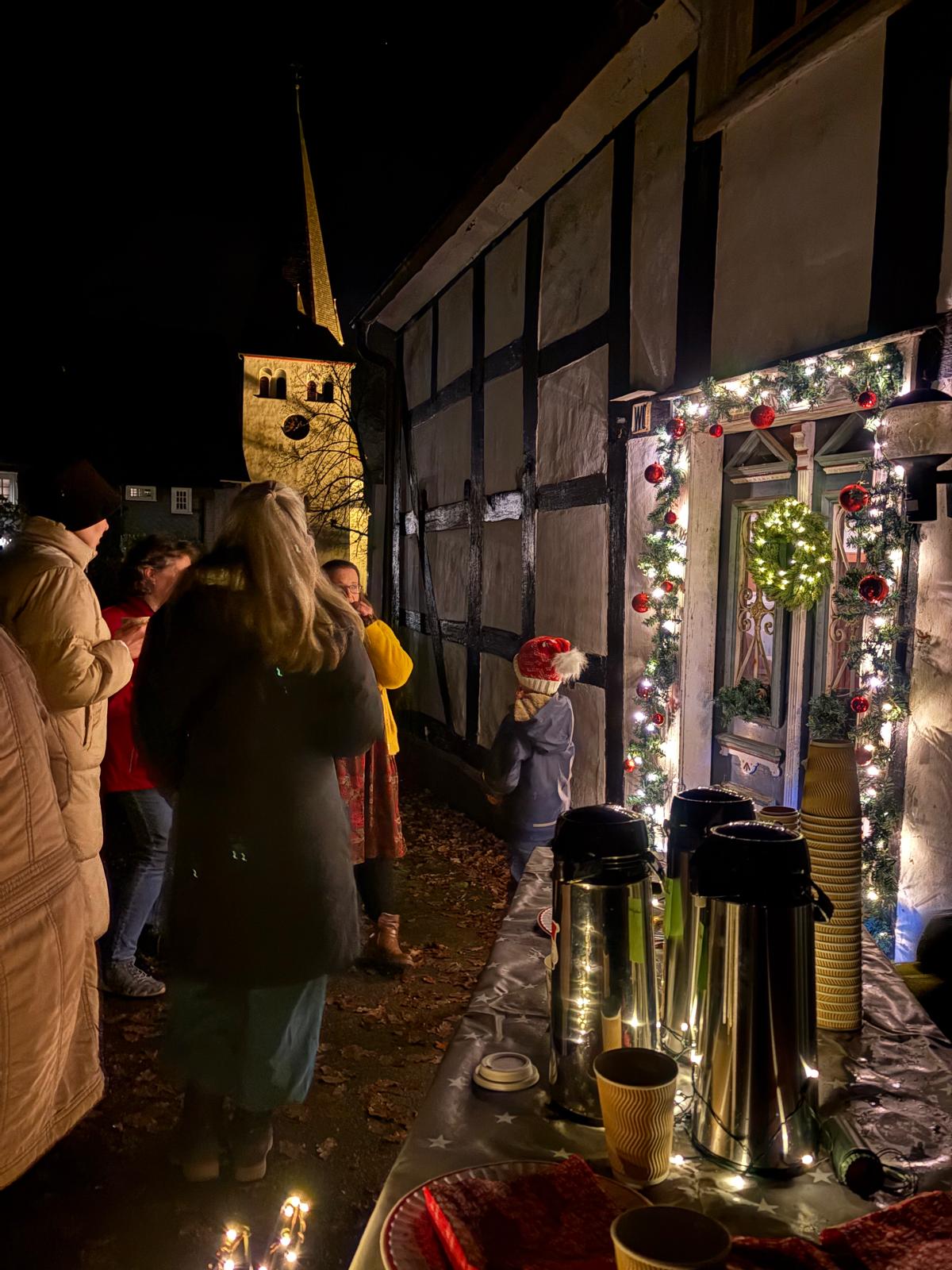 Begleitet vom Posaunenchor Alchen‑Langenholdinghausen erklangen vertraute Weihnachtslieder, die eine warme und gemeinschaftliche Atmosphäre schufen. Heiße Getränke und Gebäck luden anschließend dazu ein, den Abend gemütlich ausklingen zu lassen und miteinander ins Gespräch zu kommen.